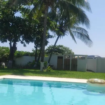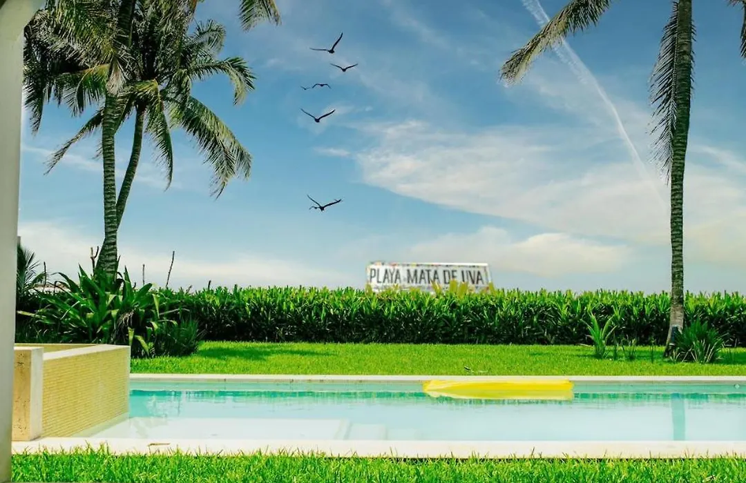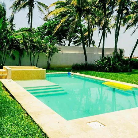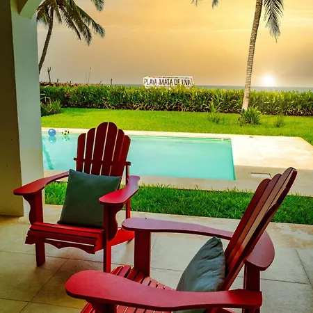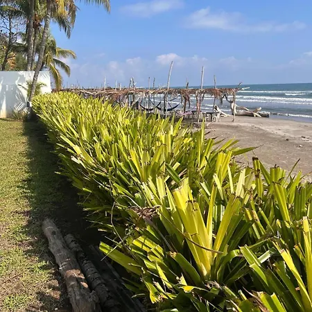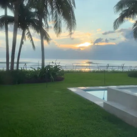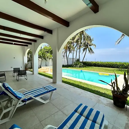 El Beachfront House Private Beach Pool 6 People El Zapote cuenta con una piscina privada y una terraza con vistas al mar.